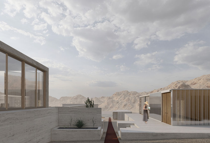 The way in which these materials are installed — with articulated panels and exposed fasteners — emphasizes the applied nature of the skin. This skin makes room for a ventilated air space behind it to exhaust heat through natural convection currents. From the land, the presence of the volumes goes nearly unnoticed. The use of glass create a reflection of the environment on the façade, while it create a contrast with the Corten steel units that are also blended in the environment due of their color. In this way, the Central Amenities are looking lightweight, while they are not built on stilts and have been emphasized by the contrast it creates with the units.